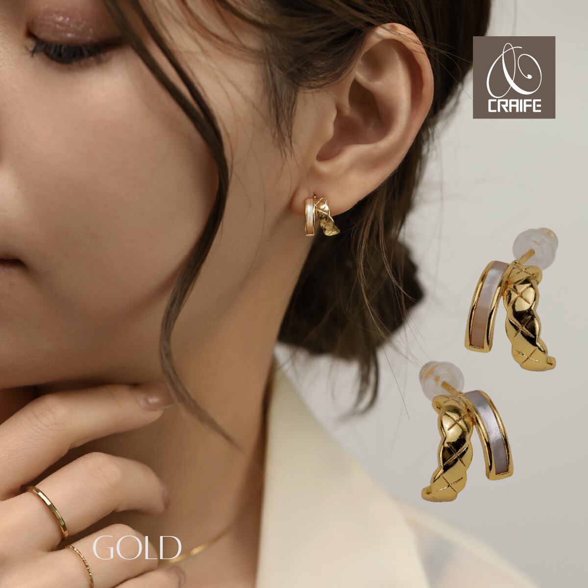 カテゴリ:ピアス キルティング シェル風 金属アレルギー対応 金アレ対応 K18 18Kコーティング プレゼント ギフト 大人 スタイリッシュ かわいい カジュアル シンプル モダン ラグジュアリー エレガント 普段使い デイリー パーティー オフィス 仕事 卒業式 卒園式 入学式 入園式 セレモニー 20代 30代40代 50代 大人女子 セレブ プチプライス ジュエリー ゴールド 送料無料 プチプライス高見え CRAIFE クライフ