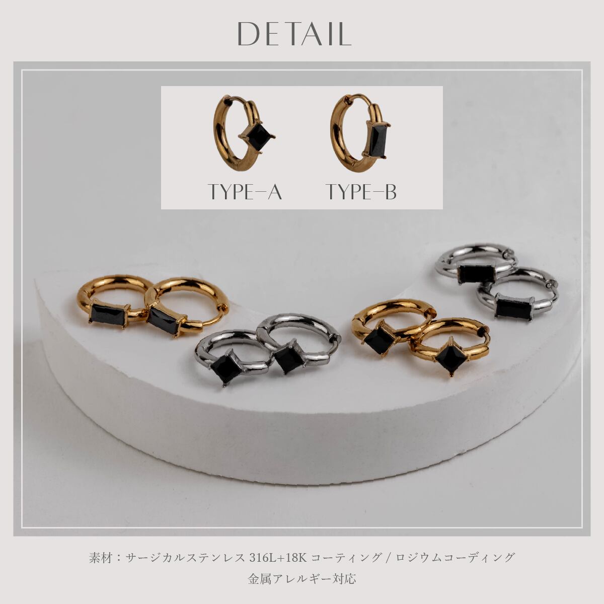 素材:サージカルステンレス316L 金属アレルギー対応