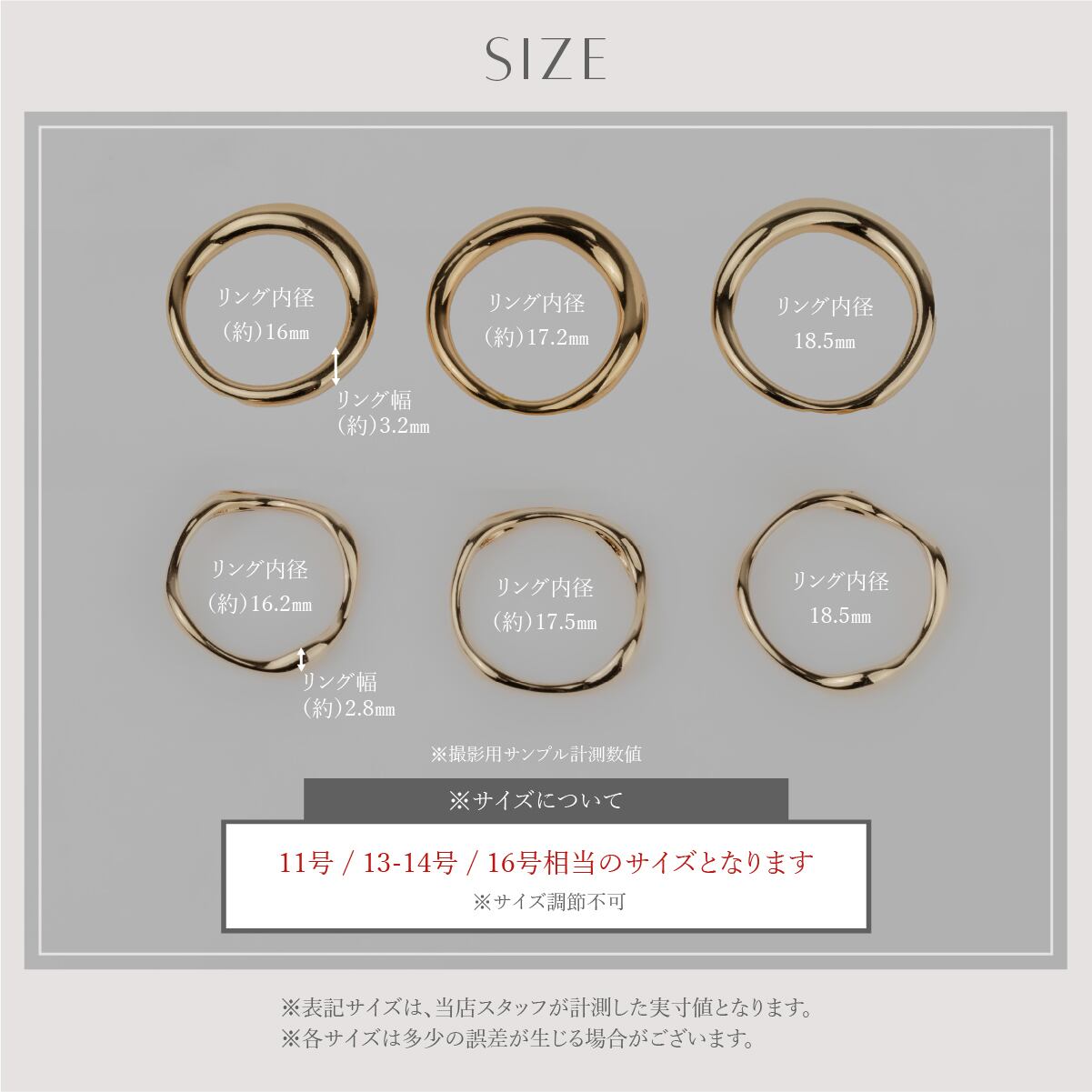 サイズ:11号 / 13~14号 / 16号相当