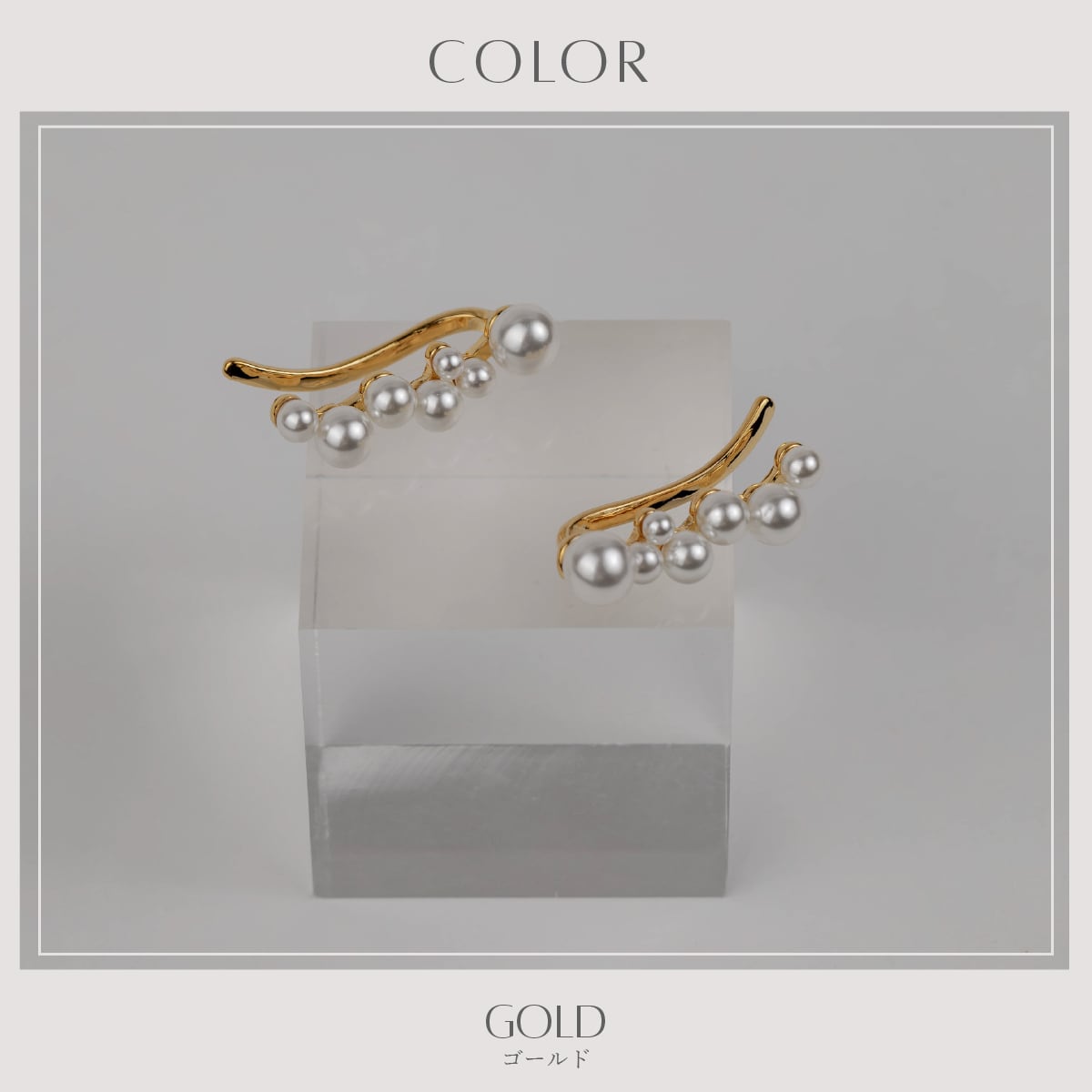 特徴:イミテーションパールが特徴のイヤーカフ。大きさの異なるパールが連なり、大人かわいい