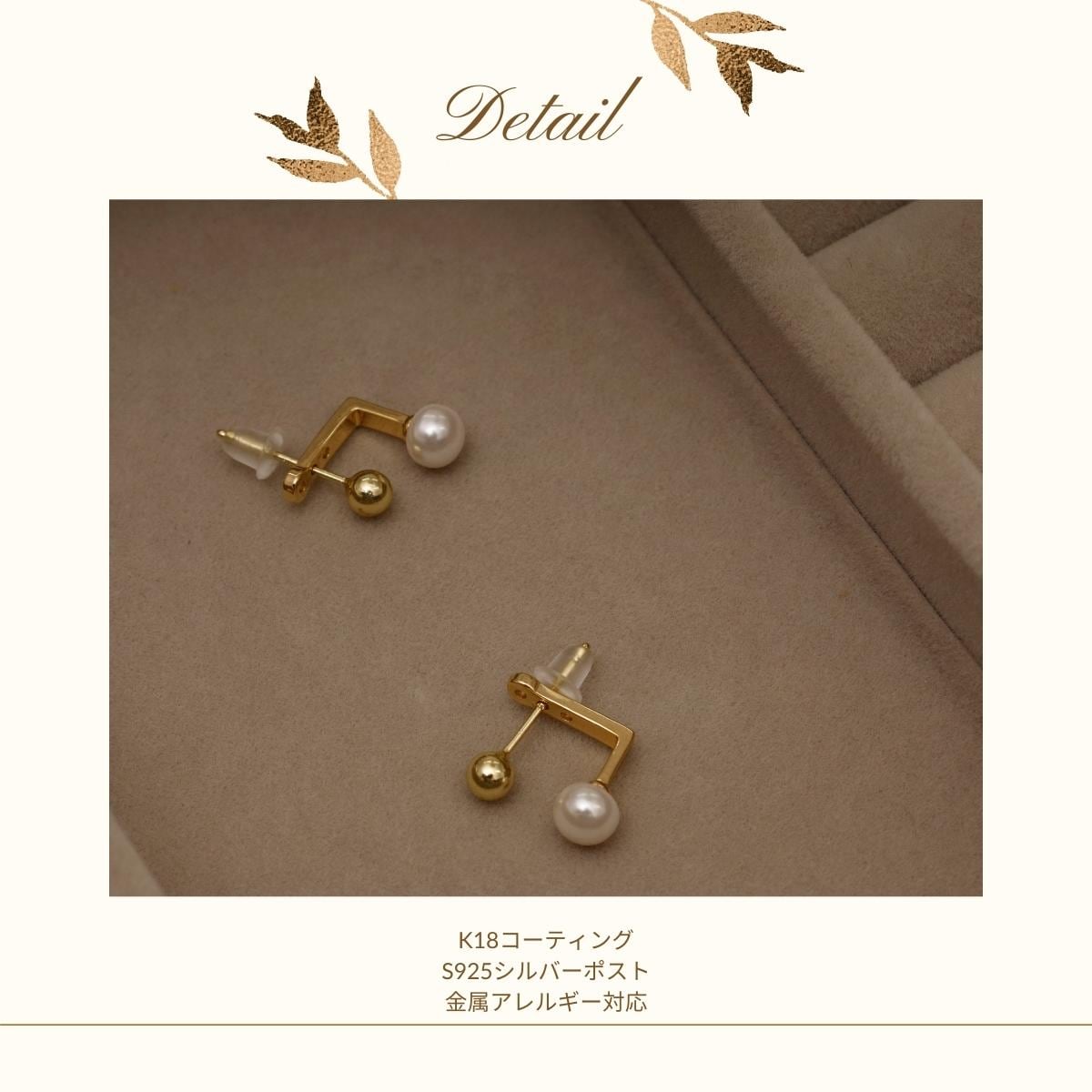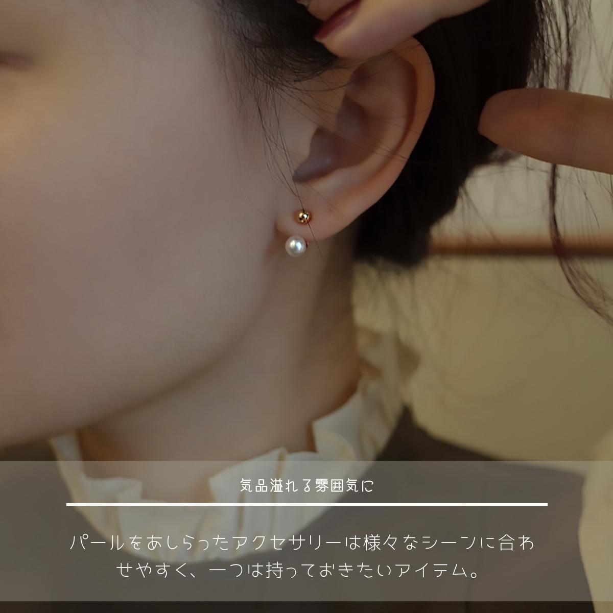 特徴:ボールピアスに一粒のパールを シンプルなボールピアスに、パールを合わせることで全く別の印象を与える雰囲気に。上品なスタイルに最適