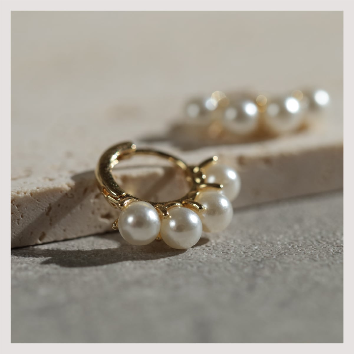 特徴:おしゃれでシンプルなフープピアス。4つのパールが装飾され、中折れタイプ(開閉式)で簡単に装着できます。ワンタッチ式で手間をかけずに取り扱え、キャッチレスデザインも備えています。14Kゴールドコーティングが施され、上品な輝きを放ちます。日常から特別な場面まで幅広く活躍するアクセサリーです。