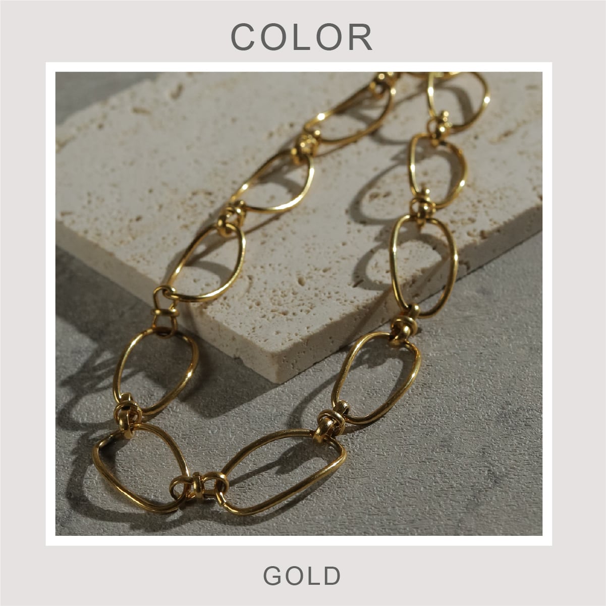 特徴:輝きとエレガンスが調和した、18Kゴールドコーティングのサージカルステンレス製ネックレス。このネックレスは、リング(輪)が繋がるシンプルで洗練されたデザインが特徴で、大人の上品なスタイルにぴったりとマッチします。シンプルながらもユニークなデザインで、大人の女性にふさわしい洗練されたアクセサリーです。日常の装いにも華やかさをプラスし、自信を持って身に着けることができます。あなたの個性とスタイルを引き立て、周囲の人々に印象的な魅力を放つこと間違いありません。